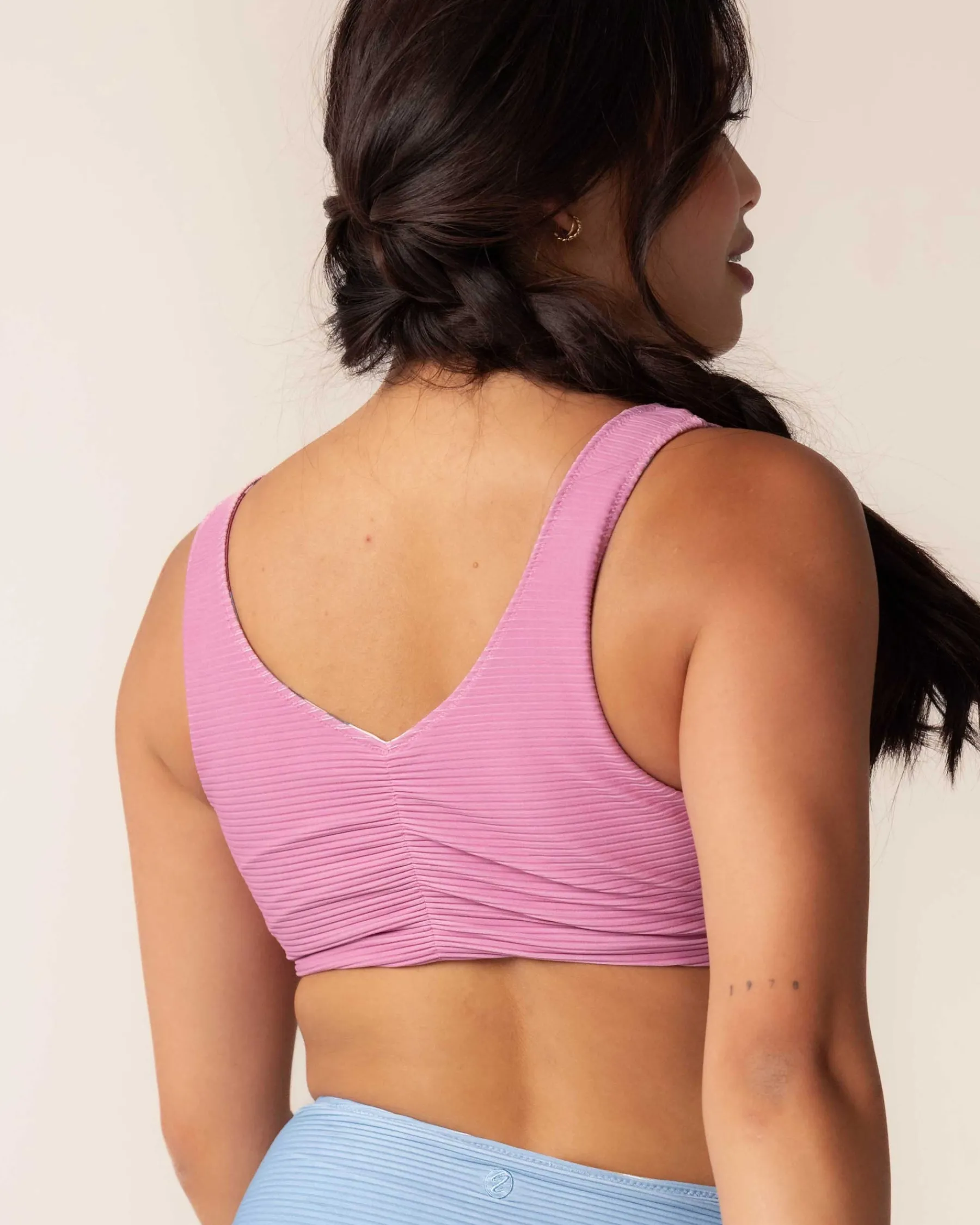 4 Ways to Wear 1 Top. Flip it. Reverse it. Mix and Match it. All in one sustainable piece. Whether sunbathing or surfing, our versatile swimsuit top is your perfect, planet-friendly companion.
