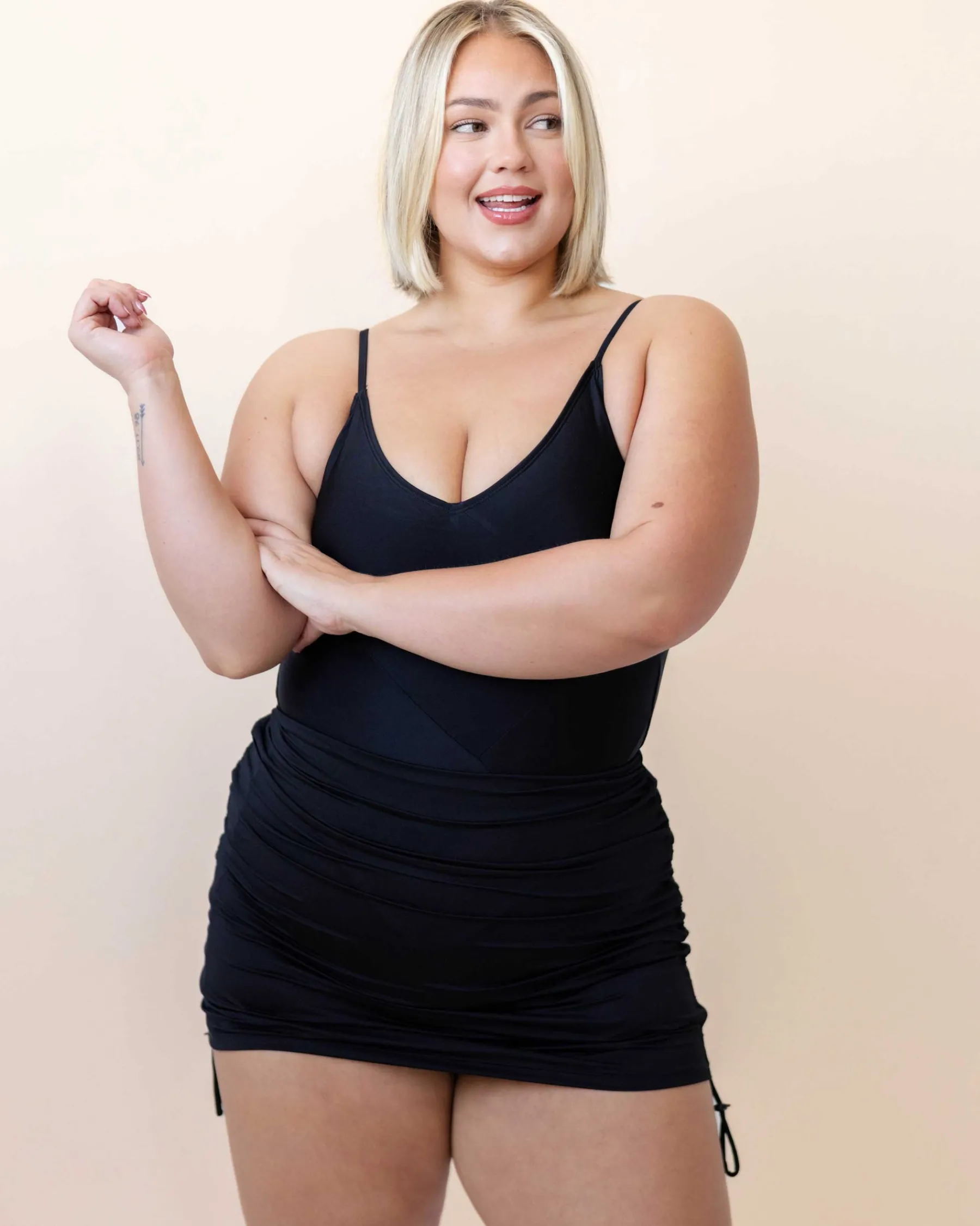 Side ruching and toggle for a personalized fit